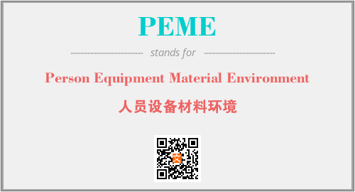 上述内容是“Person Equipment Material Environment”作为“PEME”的缩写,解释为“人员设备材料环境”时的信息,以及英文缩略词PEME所代表的英文单词,其对应的中文拼音、详细解释以及在英文中的流行度和相关分类、应用领域及应用示例等。