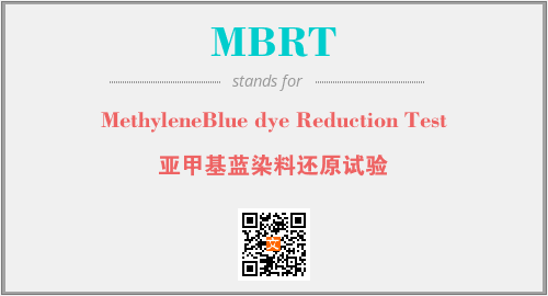 英文缩略词“MBRT”经常作为“MethyleneBlue dye Reduction Test”的英文缩写来使用,中文表示:“亚甲基蓝染料还原试验”。本文将详细介绍英文缩写词MBRT所代表英文单词,其对应的中文拼音、详细解释以及在英语中的流行度。此外,还有关于缩略词MBRT的分类、应用领域及相关应用示例等。