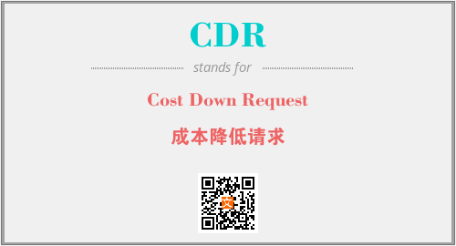 英文缩略词“CDR”经常作为“Cost Down Request”的英文缩写来使用,中文表示:“成本降低请求”。本文将详细介绍英文缩写词CDR所代表英文单词,其对应的中文拼音、详细解释以及在英语中的流行度。此外,还有关于缩略词CDR的分类、应用领域及相关应用示例等。