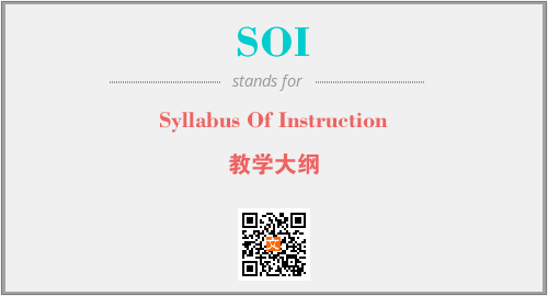 上述内容是“Syllabus Of Instruction”作为“SOI”的缩写,解释为“教学大纲”时的信息,以及英文缩略词SOI所代表的英文单词,其对应的中文拼音、详细解释以及在英文中的流行度和相关分类、应用领域及应用示例等。