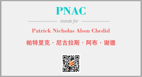 上述内容是“Patrick Nicholas Abou Chedid”作为“PNAC”的缩写,解释为“帕特里克·尼古拉斯·阿布·谢德”时的信息,以及英文缩略词PNAC所代表的英文单词,其对应的中文拼音、详细解释以及在英文中的流行度和相关分类、应用领域及应用示例等。
