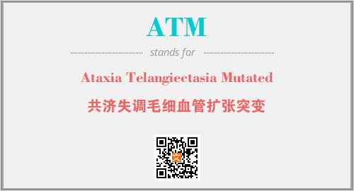 以上为Ataxia Telangiectasia Mutated英文缩略词ATM的中文解释,以及该英文缩写在英语的流行度、分类和应用领域方面的信息。