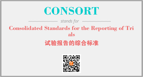 上述内容是“Consolidated Standards for the Reporting of Trials”作为“CONSORT”的缩写,解释为“试验报告的综合标准”时的信息,以及英文缩略词CONSORT所代表的英文单词,其对应的中文拼音、详细解释以及在英文中的流行度和相关分类、应用领域及应用示例等。