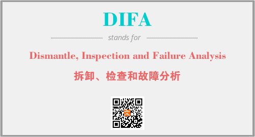上述内容是“Dismantle, Inspection and Failure Analysis”作为“DIFA”的缩写,解释为“拆卸、检查和故障分析”时的信息,以及英文缩略词DIFA所代表的英文单词,其对应的中文拼音、详细解释以及在英文中的流行度和相关分类、应用领域及应用示例等。