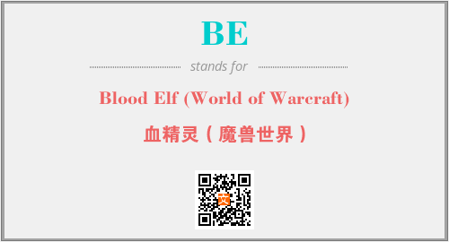 英文缩略词“BE”经常作为“Blood Elf (World of Warcraft)”的英文缩写来使用,中文表示:“血精灵(魔兽世界)”。本文将详细介绍英文缩写词BE所代表英文单词,其对应的中文拼音、详细解释以及在英语中的流行度。此外,还有关于缩略词BE的分类、应用领域及相关应用示例等。