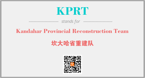英文缩略词“KPRT”经常作为“Kandahar Provincial Reconstruction Team”的英文缩写来使用,中文表示:“坎大哈省重建队”。本文将详细介绍英文缩写词KPRT所代表英文单词,其对应的中文拼音、详细解释以及在英语中的流行度。此外,还有关于缩略词KPRT的分类、应用领域及相关应用示例等。