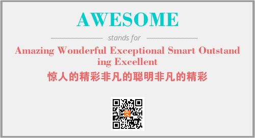 以上为Amazing Wonderful Exceptional Smart Outstanding Excellent英文缩略词AWESOME的中文解释,以及该英文缩写在英语的流行度、分类和应用领域方面的信息。