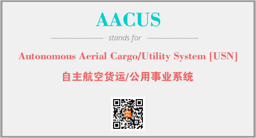 以上为Autonomous Aerial Cargo/Utility System [USN]英文缩略词AACUS的中文解释,以及该英文缩写在英语的流行度、分类和应用领域方面的信息。