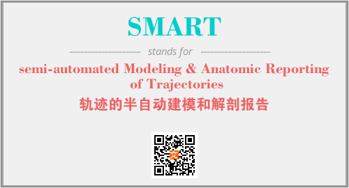 上述内容是“semi-automated Modeling & Anatomic Reporting of Trajectories”作为“SMART”的缩写,解释为“轨迹的半自动建模和解剖报告”时的信息,以及英文缩略词SMART所代表的英文单词,其对应的中文拼音、详细解释以及在英文中的流行度和相关分类、应用领域及应用示例等。
