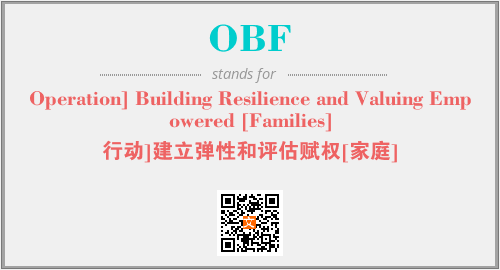 上述内容是“Operation] Building Resilience and Valuing Empowered [Families]”作为“OBF”的缩写,解释为“行动]建立弹性和评估赋权[家庭]”时的信息,以及英文缩略词OBF所代表的英文单词,其对应的中文拼音、详细解释以及在英文中的流行度和相关分类、应用领域及应用示例等。