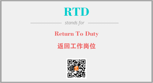 英文缩略词“RTD”经常作为“Return To Duty”的英文缩写来使用,中文表示:“返回工作岗位”。本文将详细介绍英文缩写词RTD所代表英文单词,其对应的中文拼音、详细解释以及在英语中的流行度。此外,还有关于缩略词RTD的分类、应用领域及相关应用示例等。