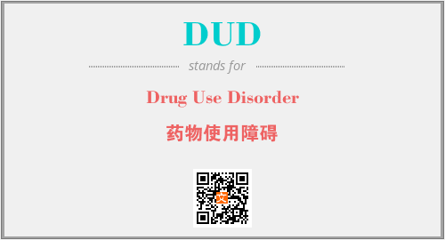 上述内容是“Drug Use Disorder”作为“DUD”的缩写,解释为“药物使用障碍”时的信息,以及英文缩略词DUD所代表的英文单词,其对应的中文拼音、详细解释以及在英文中的流行度和相关分类、应用领域及应用示例等。