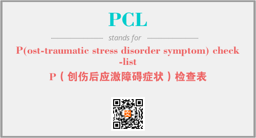 上述内容是“P(ost-traumatic stress disorder symptom) check-list”作为“PCL”的缩写,解释为“P(创伤后应激障碍症状)检查表”时的信息,以及英文缩略词PCL所代表的英文单词,其对应的中文拼音、详细解释以及在英文中的流行度和相关分类、应用领域及应用示例等。