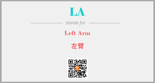 上述内容是“Left Arm”作为“LA”的缩写,解释为“左臂”时的信息,以及英文缩略词LA所代表的英文单词,其对应的中文拼音、详细解释以及在英文中的流行度和相关分类、应用领域及应用示例等。