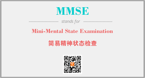 上述内容是“Mini-Mental State Examination”作为“MMSE”的缩写,解释为“简易精神状态检查”时的信息,以及英文缩略词MMSE所代表的英文单词,其对应的中文拼音、详细解释以及在英文中的流行度和相关分类、应用领域及应用示例等。