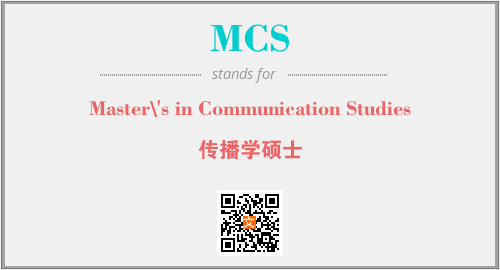 英文缩略词“MCS”经常作为“Master\'s in Communication Studies”的英文缩写来使用,中文表示:“传播学硕士”。本文将详细介绍英文缩写词MCS所代表英文单词,其对应的中文拼音、详细解释以及在英语中的流行度。此外,还有关于缩略词MCS的分类、应用领域及相关应用示例等。
