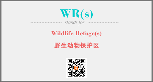 上述内容是“Wildlife Refuge(s)”作为“WR(s)”的缩写,解释为“野生动物保护区”时的信息,以及英文缩略词WR(s)所代表的英文单词,其对应的中文拼音、详细解释以及在英文中的流行度和相关分类、应用领域及应用示例等。