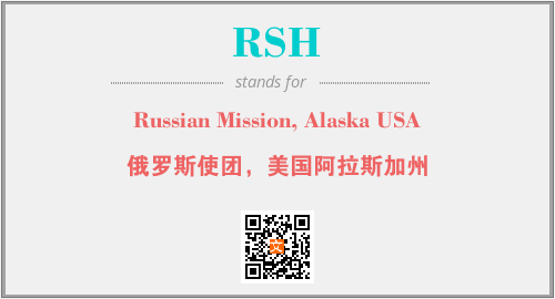 英文缩略词“RSH”经常作为“Russian Mission, Alaska USA”的英文缩写来使用,中文表示:“俄罗斯使团,美国阿拉斯加州”。本文将详细介绍英文缩写词RSH所代表英文单词,其对应的中文拼音、详细解释以及在英语中的流行度。此外,还有关于缩略词RSH的分类、应用领域及相关应用示例等。