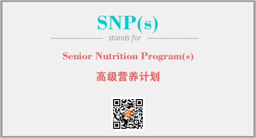 上述内容是“Senior Nutrition Program(s)”作为“SNP(s)”的缩写,解释为“高级营养计划”时的信息,以及英文缩略词SNP(s)所代表的英文单词,其对应的中文拼音、详细解释以及在英文中的流行度和相关分类、应用领域及应用示例等。