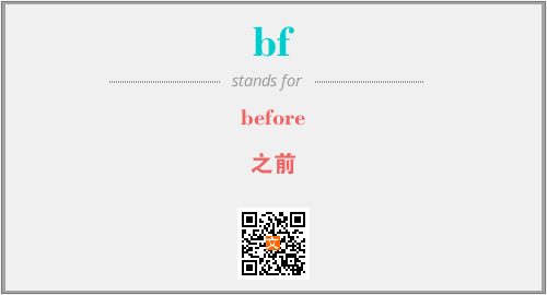 英文缩略词“bf”经常作为“before”的英文缩写来使用,中文表示:“之前”。本文将详细介绍英文缩写词bf所代表英文单词,其对应的中文拼音、详细解释以及在英语中的流行度。此外,还有关于缩略词bf的分类、应用领域及相关应用示例等。