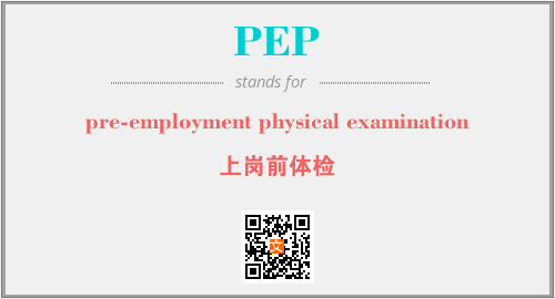 英文缩略词“PEP”经常作为“pre-employment physical examination”的英文缩写来使用,中文表示:“上岗前体检”。本文将详细介绍英文缩写词PEP所代表英文单词,其对应的中文拼音、详细解释以及在英语中的流行度。此外,还有关于缩略词PEP的分类、应用领域及相关应用示例等。
