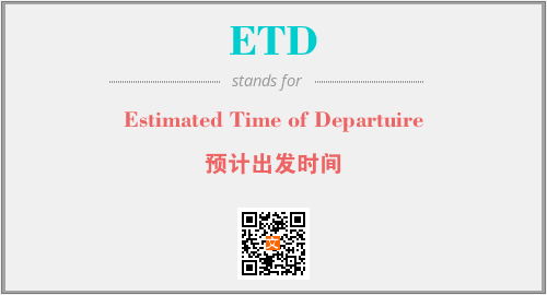 英文缩略词“ETD”经常作为“Estimated Time of Departuire”的英文缩写来使用,中文表示:“预计出发时间”。本文将详细介绍英文缩写词ETD所代表英文单词,其对应的中文拼音、详细解释以及在英语中的流行度。此外,还有关于缩略词ETD的分类、应用领域及相关应用示例等。