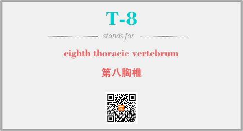 英文缩略词“T-8”经常作为“eighth thoracic vertebrum”的英文缩写来使用,中文表示:“第八胸椎”。本文将详细介绍英文缩写词T-8所代表英文单词,其对应的中文拼音、详细解释以及在英语中的流行度。此外,还有关于缩略词T-8的分类、应用领域及相关应用示例等。
