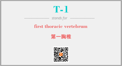上述内容是“first thoracic vertebrum”作为“T-1”的缩写,解释为“第一胸椎”时的信息,以及英文缩略词T-1所代表的英文单词,其对应的中文拼音、详细解释以及在英文中的流行度和相关分类、应用领域及应用示例等。