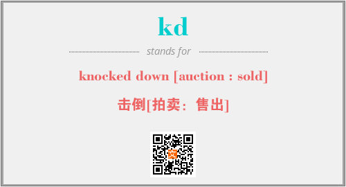 英文缩略词“kd”经常作为“knocked down [auction : sold]”的英文缩写来使用,中文表示:“击倒[拍卖:售出]”。本文将详细介绍英文缩写词kd所代表英文单词,其对应的中文拼音、详细解释以及在英语中的流行度。此外,还有关于缩略词kd的分类、应用领域及相关应用示例等。