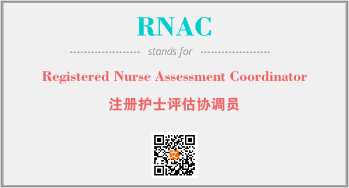 英文缩略词“RNAC”经常作为“Registered Nurse Assessment Coordinator”的英文缩写来使用,中文表示:“注册护士评估协调员”。本文将详细介绍英文缩写词RNAC所代表英文单词,其对应的中文拼音、详细解释以及在英语中的流行度。此外,还有关于缩略词RNAC的分类、应用领域及相关应用示例等。