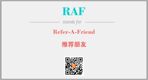 以上为Refer-A-Friend英文缩略词RAF的中文解释,以及该英文缩写在英语的流行度、分类和应用领域方面的信息。