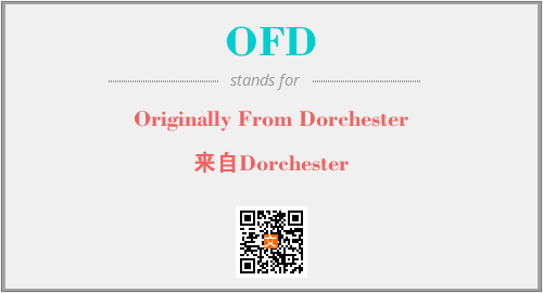 上述内容是“Originally From Dorchester”作为“OFD”的缩写,解释为“来自Dorchester”时的信息,以及英文缩略词OFD所代表的英文单词,其对应的中文拼音、详细解释以及在英文中的流行度和相关分类、应用领域及应用示例等。