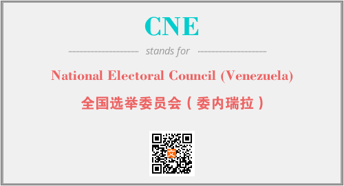 上述内容是“National Electoral Council (Venezuela)”作为“CNE”的缩写,解释为“全国选举委员会(委内瑞拉)”时的信息,以及英文缩略词CNE所代表的英文单词,其对应的中文拼音、详细解释以及在英文中的流行度和相关分类、应用领域及应用示例等。