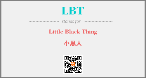 上述内容是“Little Black Thing”作为“LBT”的缩写,解释为“小黑人”时的信息,以及英文缩略词LBT所代表的英文单词,其对应的中文拼音、详细解释以及在英文中的流行度和相关分类、应用领域及应用示例等。