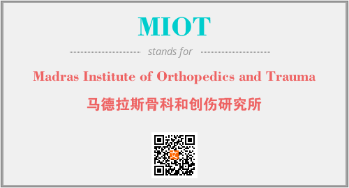 英文缩略词“MIOT”经常作为“Madras Institute of Orthopedics and Trauma”的英文缩写来使用,中文表示:“马德拉斯骨科和创伤研究所”。本文将详细介绍英文缩写词MIOT所代表英文单词,其对应的中文拼音、详细解释以及在英语中的流行度。此外,还有关于缩略词MIOT的分类、应用领域及相关应用示例等。