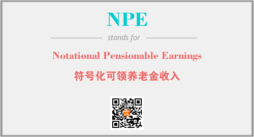 上述内容是“Notational Pensionable Earnings”作为“NPE”的缩写,解释为“符号化可领养老金收入”时的信息,以及英文缩略词NPE所代表的英文单词,其对应的中文拼音、详细解释以及在英文中的流行度和相关分类、应用领域及应用示例等。
