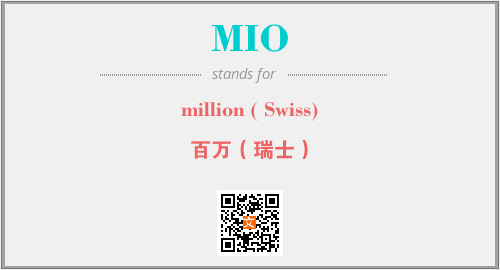 英文缩略词“MIO”经常作为“million ( Swiss)”的英文缩写来使用,中文表示:“百万(瑞士)”。本文将详细介绍英文缩写词MIO所代表英文单词,其对应的中文拼音、详细解释以及在英语中的流行度。此外,还有关于缩略词MIO的分类、应用领域及相关应用示例等。
