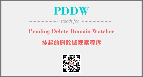 英文缩略词“PDDW”经常作为“Pending Delete Domain Watcher”的英文缩写来使用,中文表示:“挂起的删除域观察程序”。本文将详细介绍英文缩写词PDDW所代表英文单词,其对应的中文拼音、详细解释以及在英语中的流行度。此外,还有关于缩略词PDDW的分类、应用领域及相关应用示例等。