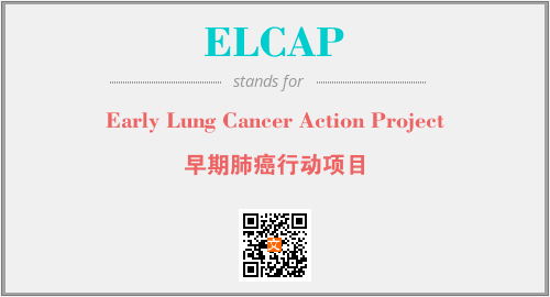 上述内容是“Early Lung Cancer Action Project”作为“ELCAP”的缩写,解释为“早期肺癌行动项目”时的信息,以及英文缩略词ELCAP所代表的英文单词,其对应的中文拼音、详细解释以及在英文中的流行度和相关分类、应用领域及应用示例等。