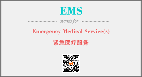 上述内容是“Emergency Medical Service(s)”作为“EMS”的缩写,解释为“紧急医疗服务”时的信息,以及英文缩略词EMS所代表的英文单词,其对应的中文拼音、详细解释以及在英文中的流行度和相关分类、应用领域及应用示例等。