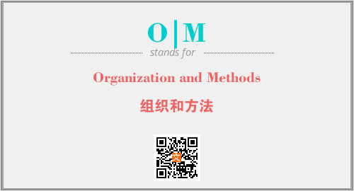 英文缩略词“O|M”经常作为“Organization and Methods”的英文缩写来使用,中文表示:“组织和方法”。本文将详细介绍英文缩写词O|M所代表英文单词,其对应的中文拼音、详细解释以及在英语中的流行度。此外,还有关于缩略词O|M的分类、应用领域及相关应用示例等。