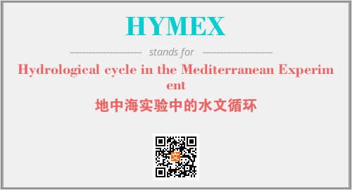 英文缩略词“HYMEX”经常作为“Hydrological cycle in the Mediterranean Experiment”的英文缩写来使用,中文表示:“地中海实验中的水文循环”。本文将详细介绍英文缩写词HYMEX所代表英文单词,其对应的中文拼音、详细解释以及在英语中的流行度。此外,还有关于缩略词HYMEX的分类、应用领域及相关应用示例等。