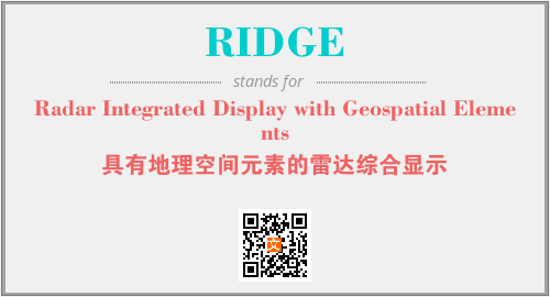 上述内容是“Radar Integrated Display with Geospatial Elements”作为“RIDGE”的缩写,解释为“具有地理空间元素的雷达综合显示”时的信息,以及英文缩略词RIDGE所代表的英文单词,其对应的中文拼音、详细解释以及在英文中的流行度和相关分类、应用领域及应用示例等。