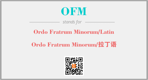 上述内容是“Ordo Fratrum Minorum/Latin”作为“OFM”的缩写,解释为“Ordo Fratrum Minorum/拉丁语”时的信息,以及英文缩略词OFM所代表的英文单词,其对应的中文拼音、详细解释以及在英文中的流行度和相关分类、应用领域及应用示例等。