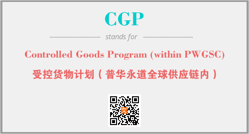 上述内容是“Controlled Goods Program (within PWGSC)”作为“CGP”的缩写,解释为“受控货物计划(普华永道全球供应链内)”时的信息,以及英文缩略词CGP所代表的英文单词,其对应的中文拼音、详细解释以及在英文中的流行度和相关分类、应用领域及应用示例等。