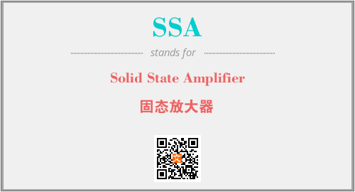 上述内容是“Solid State Amplifier”作为“SSA”的缩写,解释为“固态放大器”时的信息,以及英文缩略词SSA所代表的英文单词,其对应的中文拼音、详细解释以及在英文中的流行度和相关分类、应用领域及应用示例等。