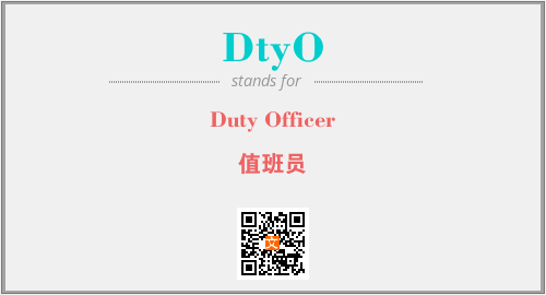 上述内容是“Duty Officer”作为“DtyO”的缩写,解释为“值班员”时的信息,以及英文缩略词DtyO所代表的英文单词,其对应的中文拼音、详细解释以及在英文中的流行度和相关分类、应用领域及应用示例等。