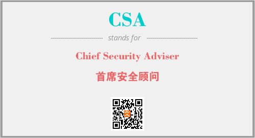 英文缩略词“CSA”经常作为“Chief Security Adviser”的英文缩写来使用,中文表示:“首席安全顾问”。本文将详细介绍英文缩写词CSA所代表英文单词,其对应的中文拼音、详细解释以及在英语中的流行度。此外,还有关于缩略词CSA的分类、应用领域及相关应用示例等。