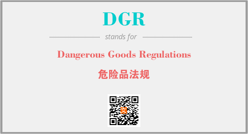 英文缩略词“DGR”经常作为“Dangerous Goods Regulations”的英文缩写来使用,中文表示:“危险品法规”。本文将详细介绍英文缩写词DGR所代表英文单词,其对应的中文拼音、详细解释以及在英语中的流行度。此外,还有关于缩略词DGR的分类、应用领域及相关应用示例等。