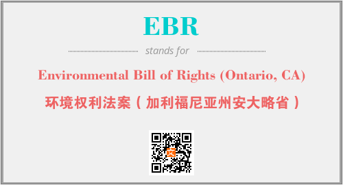 上述内容是“Environmental Bill of Rights (Ontario, CA)”作为“EBR”的缩写,解释为“环境权利法案(加利福尼亚州安大略省)”时的信息,以及英文缩略词EBR所代表的英文单词,其对应的中文拼音、详细解释以及在英文中的流行度和相关分类、应用领域及应用示例等。